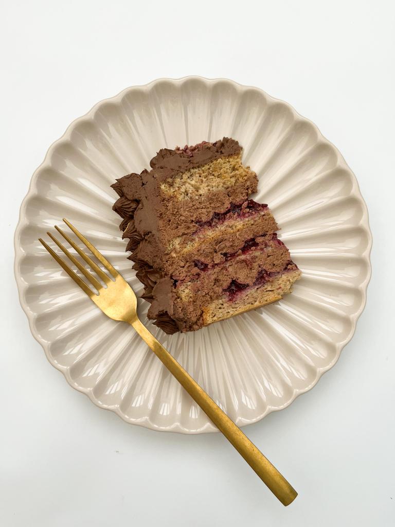 Na biskvite prvo mažemo namaz od šumskog voća, a zatim i čokoladnu kremu. Za dekoraciju koristila sam čokoladni ganache (500 ml vrhnja za šlag od mliječne masti i 230 g tamne čokolade).