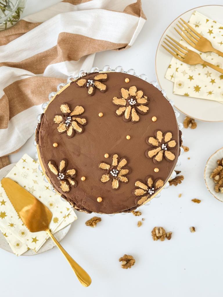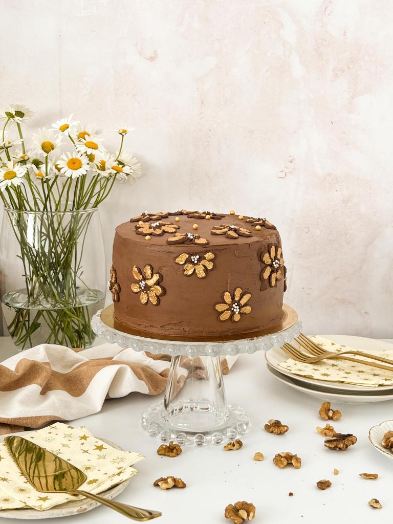 2. For the walnut cream first melt the dark chocolate together with the coconut oil in steam. Then add to the blender together with walnuts, sweetener (3-4 tablespoons, depending on how sweet you want it to be) and vanilla flavoring. The mixture should be smooth and the texture like a spread. In the meantime, mix the sweetener with the mascarpone cheese. Add the walnut spread to the prepared mixture and mix everything together. Finally, mix with mixer the whipped cream and add it to the previously obtained mixture. The cream is ready to serve.