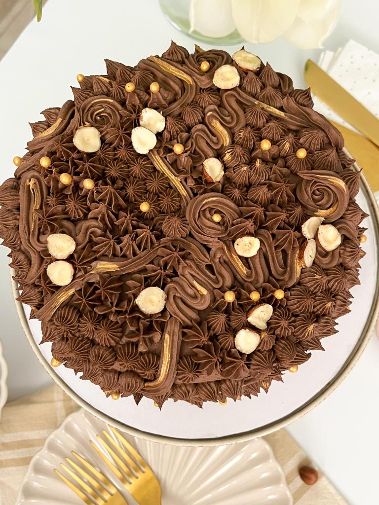 4.Spread the forest fruit spread on the biscuits first, and then the chocolate cream. For decoration, I used chocolate ganache (500 ml of milk fat whipped cream and 230 g of dark chocolate).