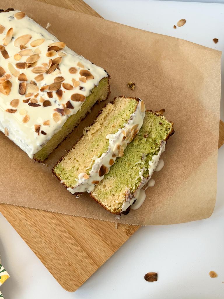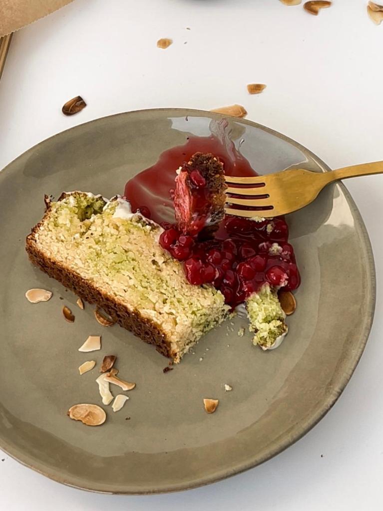 1.First, beat the eggs together with the sweetener with a mixer until the mixture doubles in size and becomes light. Then add the remaining wet ingredients (milk, vanilla and oil). After mixing everything well, add the dry ingredients (baking powder, almond and coconut flour and a pinch of salt) to the resulting mixture. When all the ingredients are well incorporated, divide the mixture into two equal parts. In one half, add pistachio spread and, if desired, two drops of green food coloring. We alternately add the green and yellow mixture to the mold and put it on the baking sheet.
