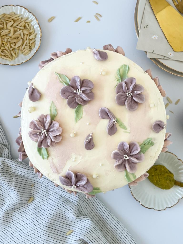 Krema koju sam koristila za dekoraciju je “Swiss Meringue Buttercream” ili ti ga švicarska krema od maslaca. Recept kako ju dobiti sa zaslađivačem možete pronaći pod kategorijom OSTALO (“KREMA OD MASLACA”).