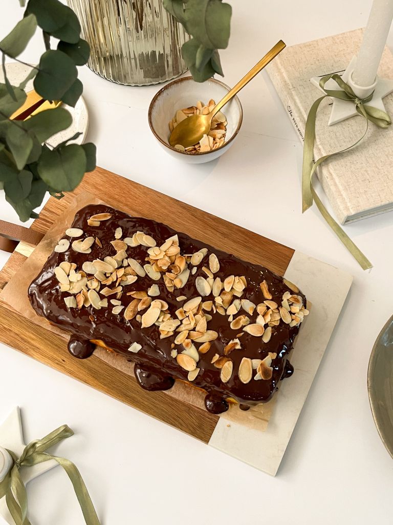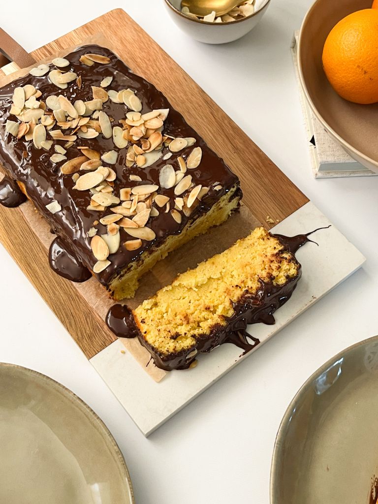 Naranče ogulite i uz pomoć sjeckalice ili štapnog miksera ih usitnite. U međuvremenu jaja zajedno sa zaslađivačem umutite mikserom. Dodajte ulje, aromu vanilije, naribana korica naranče i usitnjene naranče. Sve skupa umiješajte mikserom ili rukom te dodajte suhe sastojke (brašno i prašak za pecivo). Sve prebacite u kalup za kruh. Pecite 40 min na 180˚ C. Nakon što se kruh ohladio, prelijte ga otopljenom čokoladom i dekorirajte po želji.