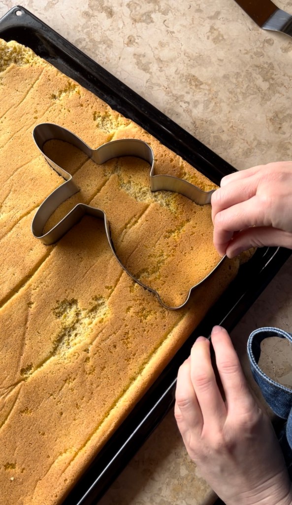 Za početak žumanjke odvojite od bjelanjaka. Bjelanjke istucite u čvrsti snijeg, a u žumanjke dodajte zaslađivač i sve skupa umiješajte mikserom. Mikserom mutite dok smjesa ne postane svjetlija i udvostruči se volumenom. Zatim u smjesu dodajte 1 vrećicu Finesse arome bourbon vanilije i 5 žlica maslinovog ulja. Umiješajte mikserom. Za kraj preostaje vam samo da u dobivenu smjesu prvo umiješate preostale suhe sastojke, a zatim i snijeg od bjelanjaka. Smjesu prebacite na lim za pečenje i pecite 15 min na 160˚ C. Nakon što je biskvit pečen i ohladio se, uz pomoć Dr. Oetker kalupa u obliku zeca izrežite 4 komada biskvita koje ćete slagati u tako zvanu „golu“ tortu.