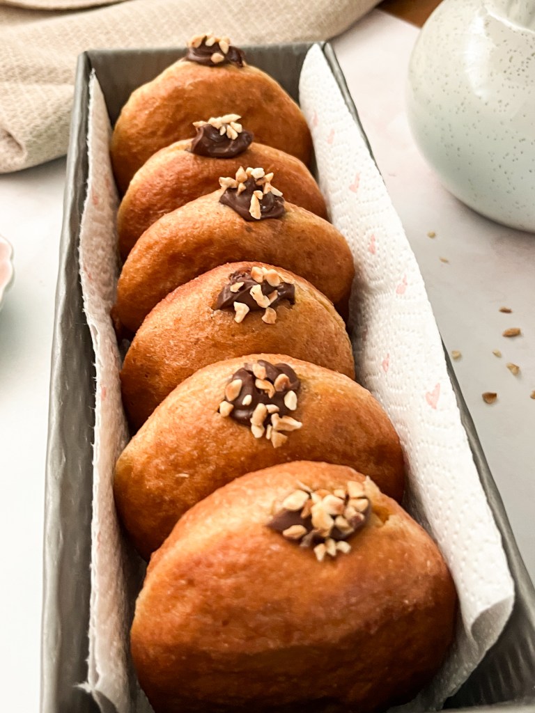 Pričekajte da se krafne ohlade i krenite ih puniti. Kako bi vam punjenje što više ispunilo tijesto, tijesto zarežite škarama.
