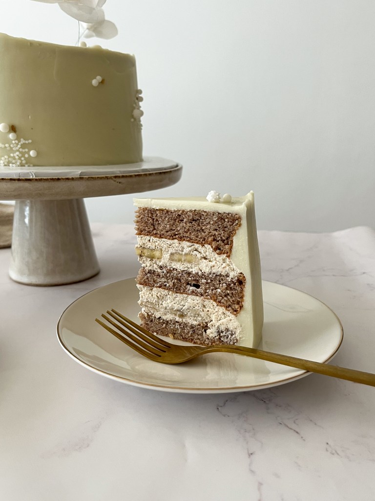 U mojoj verziji, riječ je o torti bogatog okusa u kojoj se skladno isprepliću note kave, oraha, ruma i banane. I nemojte odmah pomisliti da je torta “prepuna šećera” — za cijelu tortu koristila sam samo jednu malo veću bananu, koja je gotovo i neprimjetna na komadu torte.